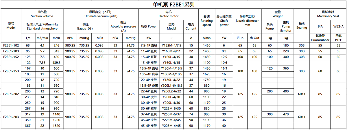 2.上列性能基于進氣溫度20℃,進水溫度15℃,排氣壓力1013hpa的條件,被吸入氣體為飽和空氣。(飽和空氣是指在對應吸入狀態下,其相對濕度為100%的濕空氣。)3.抽氣速率、軸功率性能允差10%。